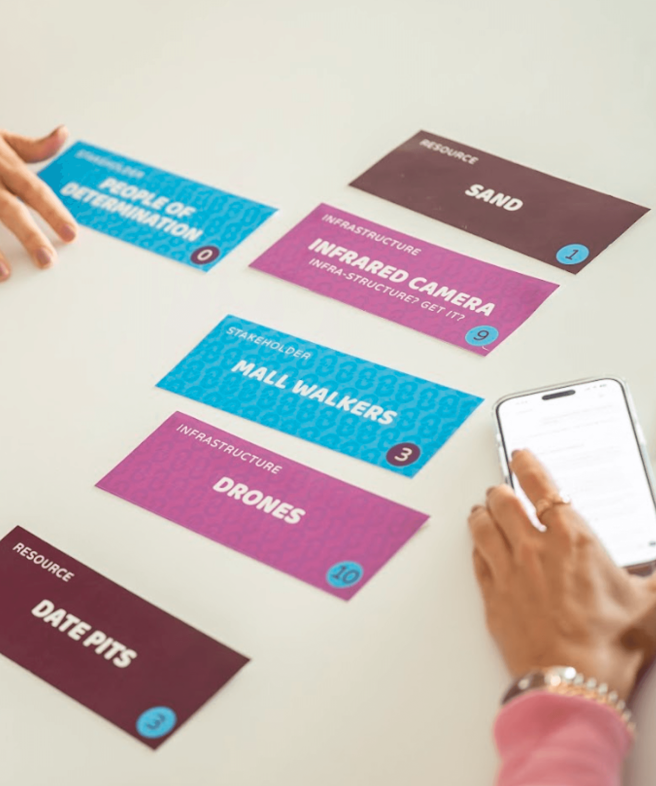 We turned the brief into The Great MAF Sustainability Trading Game, a fast-paced experience where teams used limited credits to trade resources, stakeholders, and infrastructure. The gameplay mirrored real-world sustainability challenges like scarcity, collaboration, and shared responsibility. Our facilitators adapted live to the room, introducing twists that kept energy high and ideas flowing.